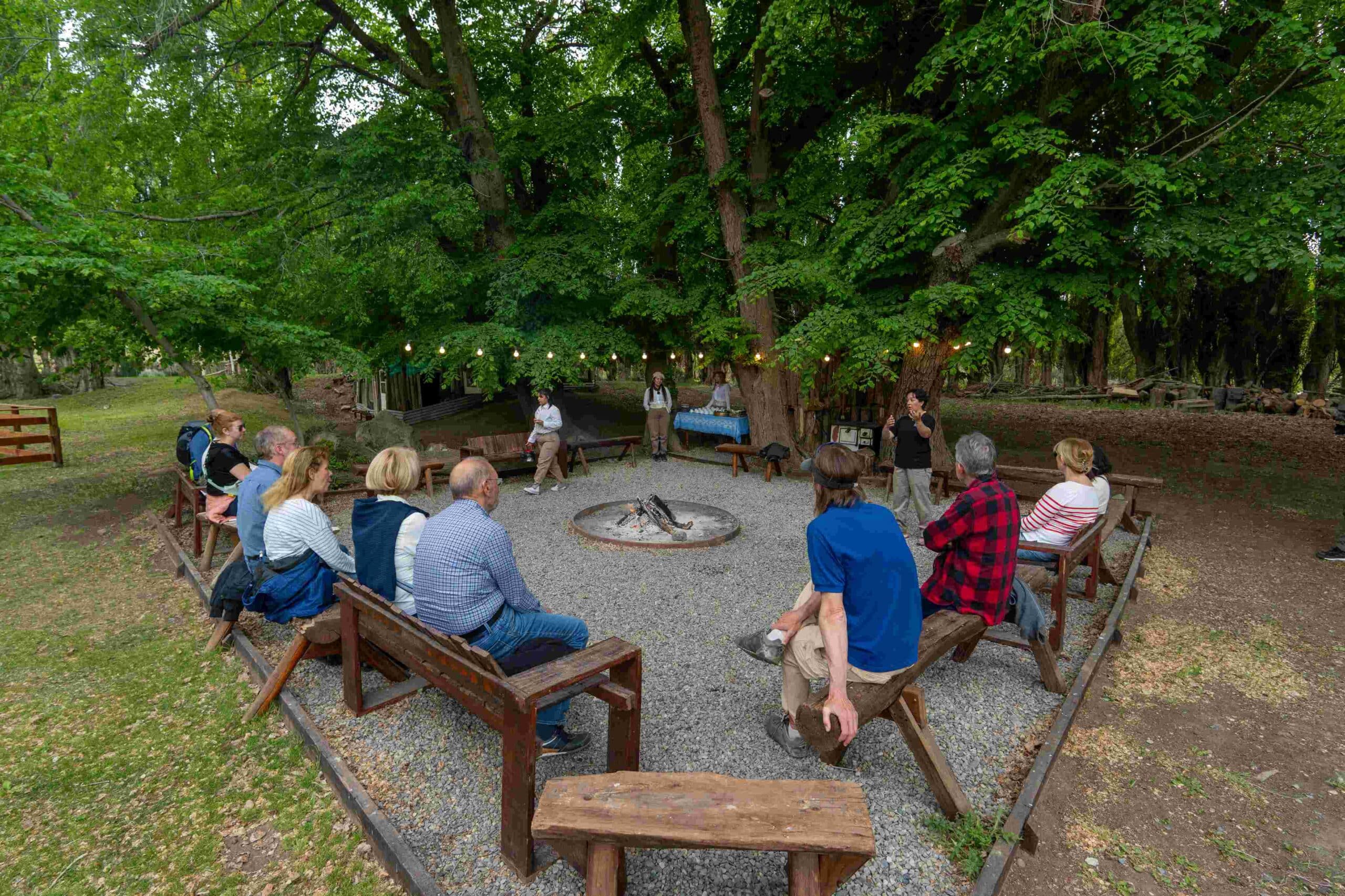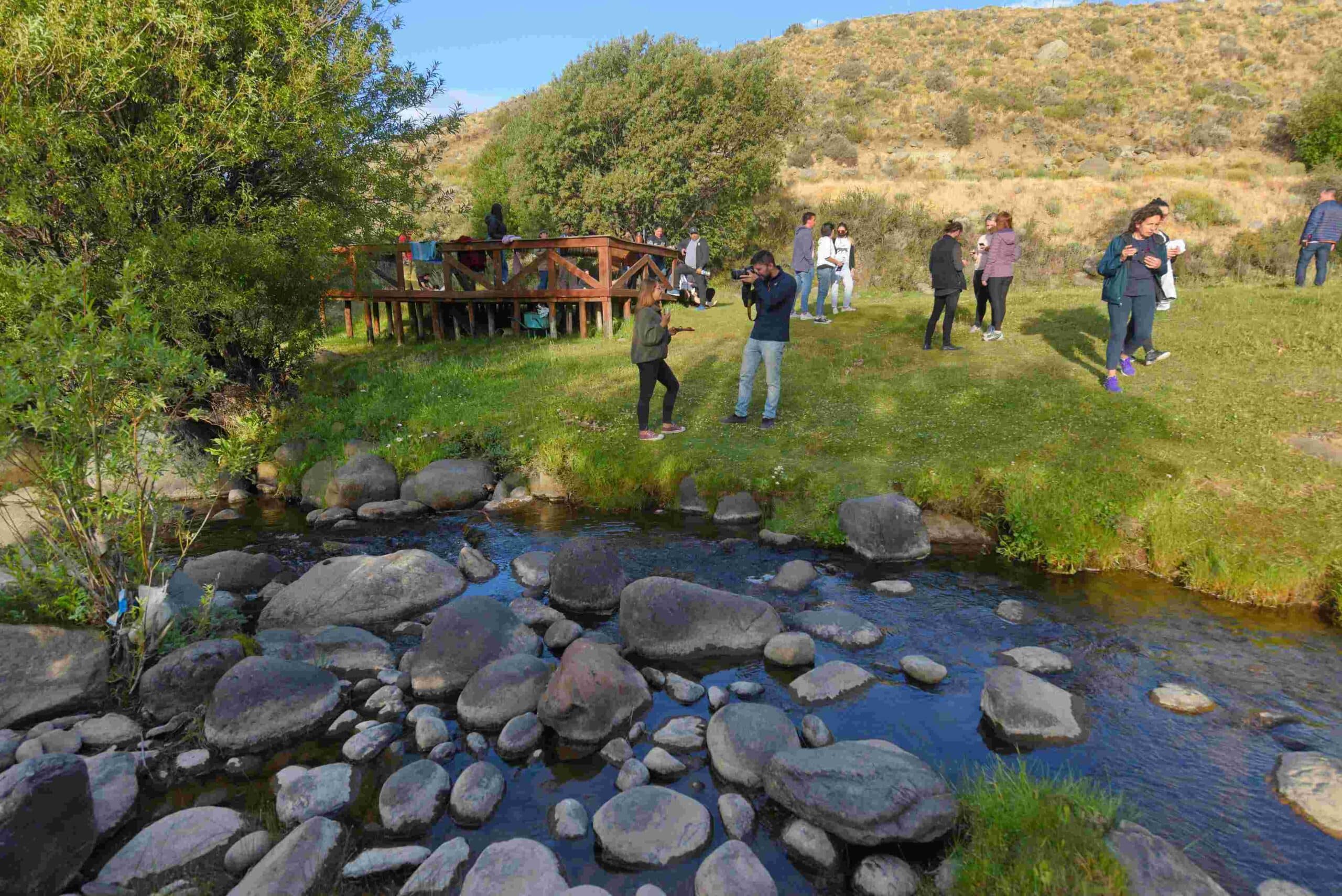 The walk concludes with a “Patagonian wine tasting” by the stream and, on the way back, the organic gardens and plant nursery are visited.