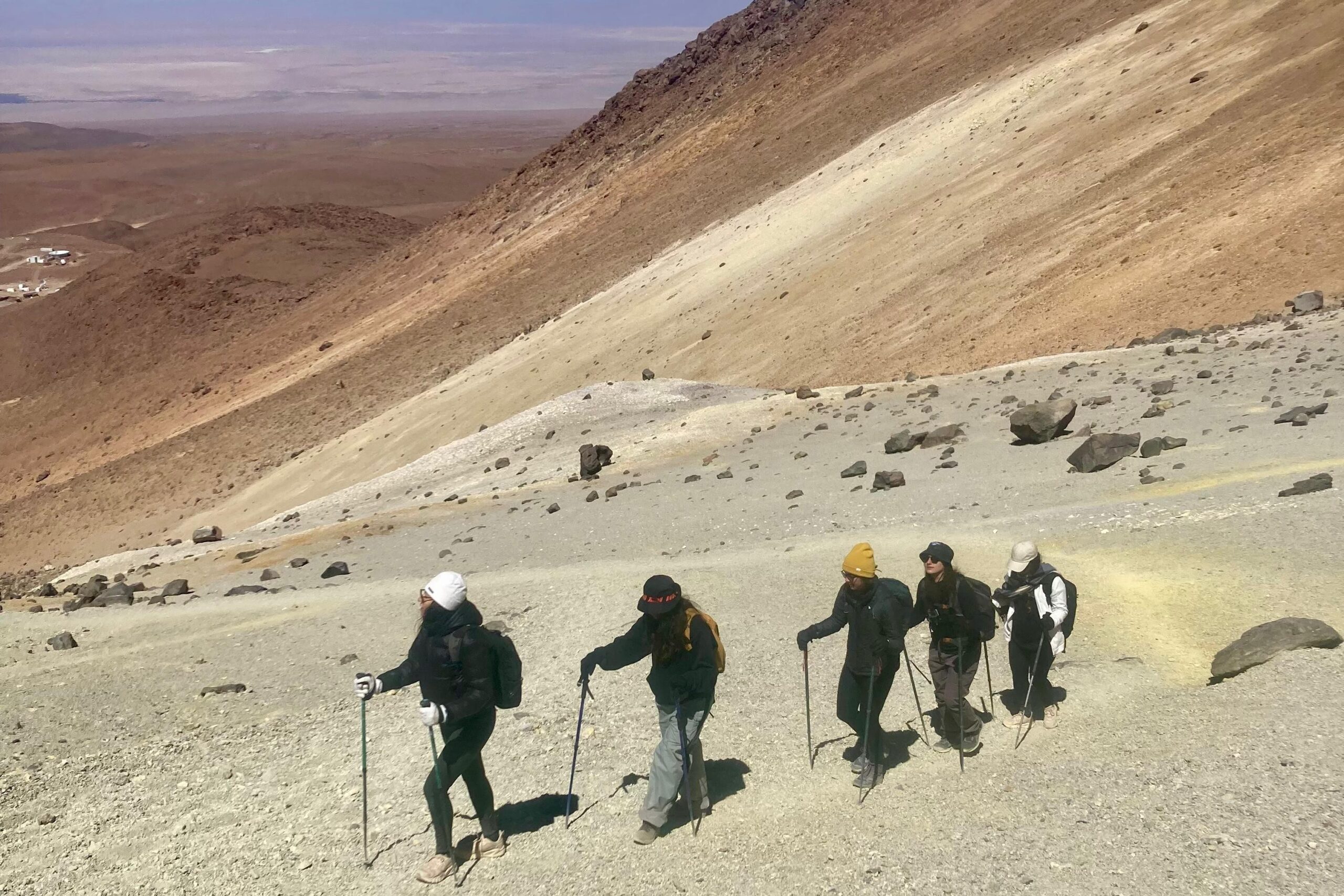 Upon arrival, participants approach the starting point of the ascent at approximately 5,300 meters above sea level. Before beginning the climb, there is a technical briefing and preparation session.